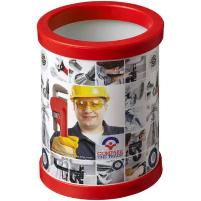 Recipiente fabricado en el Reino Unido que es fantástico para guardar bolígrafos, lápices y otros artículos de escritorio. Embalada de forma compacta.