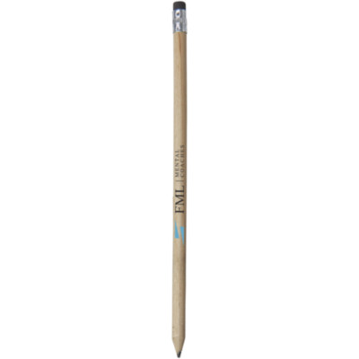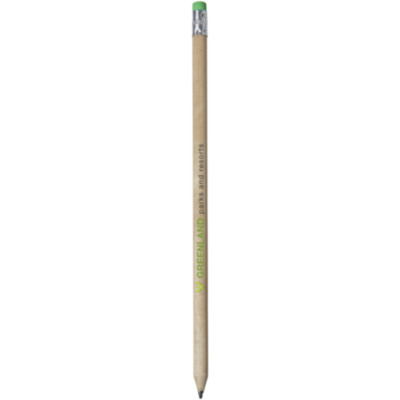 Lápiz de madera con el cuerpo natural y goma de color. Sin afilar.