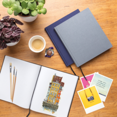 Libreta lujosa con tapa en tela de alta calidad de encuadernación. Con 96 hojas / 192 páginas de 80 g / m2. Papel blanco. Con marcador de cinta.