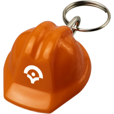 Llavero con forma de casco rígido y anilla abierta de metal. Ideal para empresas de construcción o seguridad.