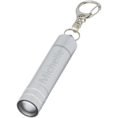 Práctico llavero LED con función de linterna y luz. La bombilla LED blanca genera 5 lúmenes y se acciona mediante un interruptor de encendido por botón. Saque el cuerpo para obtener más luz. Viene con un cierre de mosquetón metálico para poder engancharla fácilmente a un bolso o a un juego de llaves. Pilas incluidas.