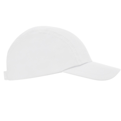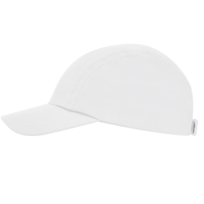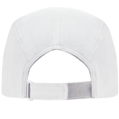 Gorra técnica de tres paneles. Tejido ligero y transpirable. Cierre ajustable de velcro en la parte posterior. Frontal especial para reprocesos.