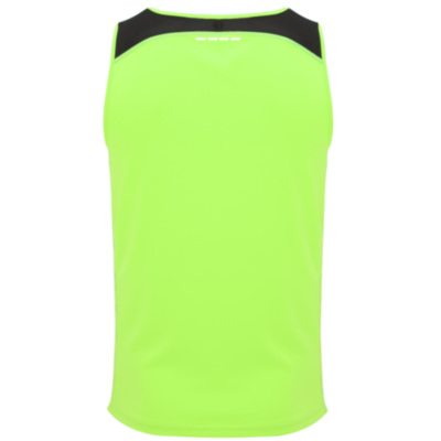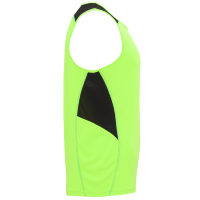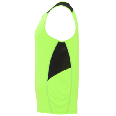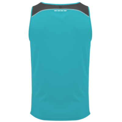 Camiseta técnica de tirantes con detalles reflectantes. Cuello redondo con cubrecosturas de refuerzo. Combinada en dos tejidos de poliéster y tres colores. Tejido principal interlock, paneles laterales y superiores en tejido micro perforado para mayor transpiración. Fácil secado.