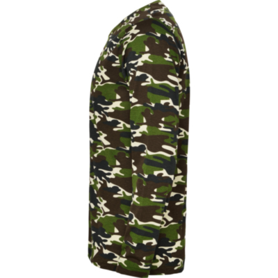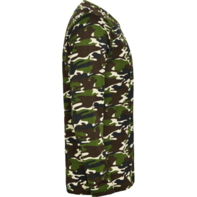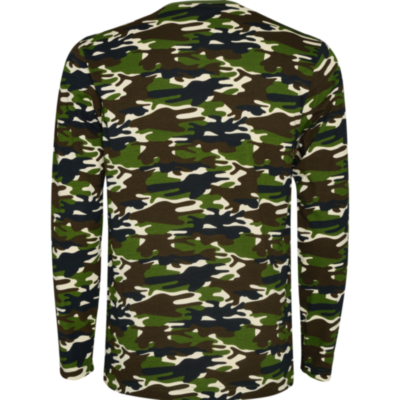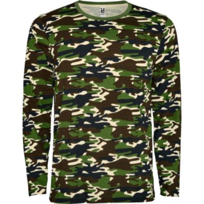 Camiseta manga larga, estampado camuflaje, cuello a caja redondo y sin puños. Refuerzo de 4 capas con cubrecosturas en la parte interior de cuello y hombros. Costuras laterales.