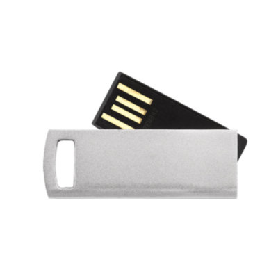 Memoria USB ultra fina con mecanismo rotatorio.El Precio incluye marcaje a 2 colores y entrega a domicilio.