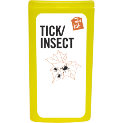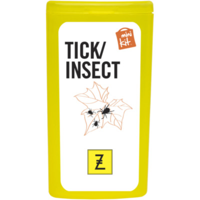 Kit ideal para llevar encima que te prepara para picaduras. Contenido: 1 quita garrapatas azul (humano), 1 toallita repelente de insectos, 2 toallitas limpiadoras, 10 apósitos adhesivos resistentes al agua. Todos los complementos de primeros auxilios cumplen todas las normativas de la UE. El precio incluye impresión a todo color en la etiqueta.