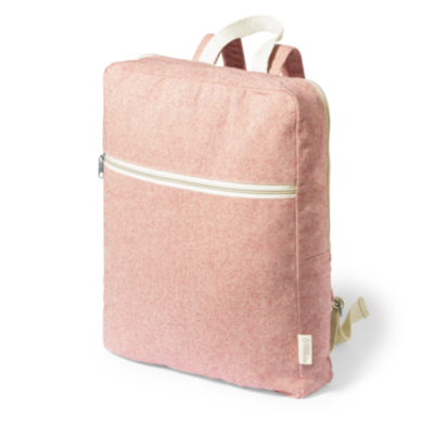 Mochila de línea nature fabricada en algodón 100% reciclado GRS de 275g/m2. Compartimento principal y bolsillo frontal con cierre de cremallera. Con asa de transporte y cintas para hombros ajustables a juego. Disponible en variada gama de colores y con distintivo algodón reciclado en etiqueta exterior. Disponible certificación GRS (Global Recycled Standard / Estándar de Reciclaje Global), que garantiza el origen reciclado del material usado para fabricar el producto.