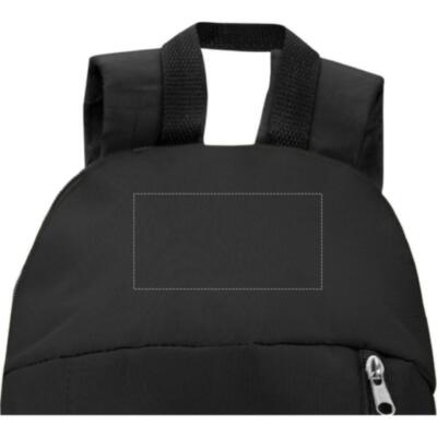 Mochila de poliéster de 600D con bolsillo exterior de cremallera. Parte trasera acolchada de poliéster 210D.