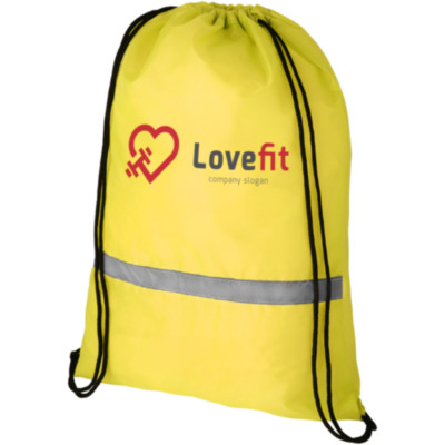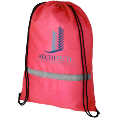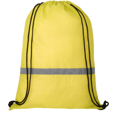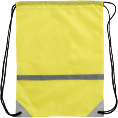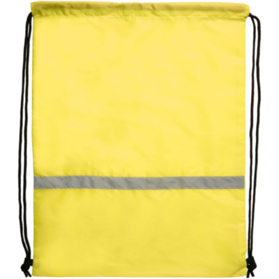 Mochila de cuerdas con certificación EN 13356. Gran compartimento principal con cierre de cuerda. Cuenta con una tira frontal reflectante y esquinas reforzadas. Resistencia para hasta 5 kg de peso. .