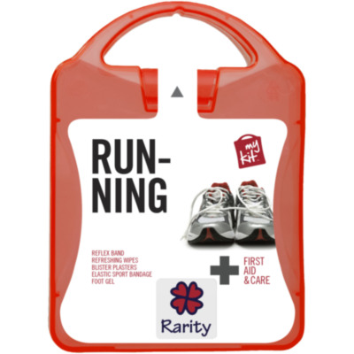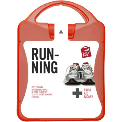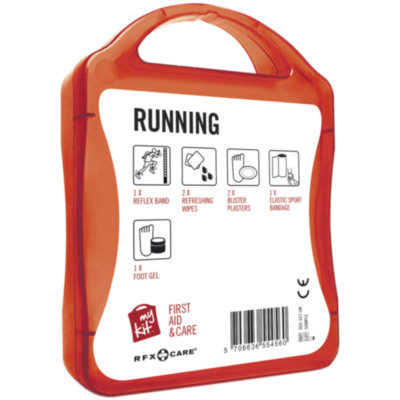 Kit ideal para corredores. Con este kit podrás refrescarte y relajarte después de una carrera. La banda reflectante te dará visibilidad. Con los complementos de primeros auxilios estarás preparado para pequeños accidentes. Contenido: 1 banda reflectante, 2 toallitas refrescantes, 2 adhesivos para ampollas, 1 venda elástica para deporte, 1 gel para pies. Todos los complementos de primeros auxilios cumplen todas las normativas de la UE. El precio incluye impresión a todo color en la etiqueta.