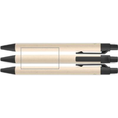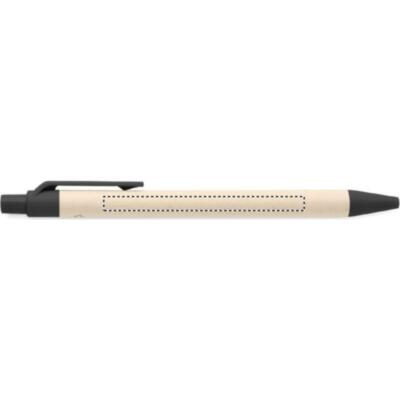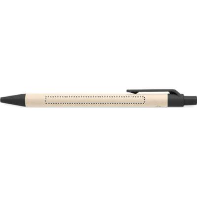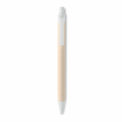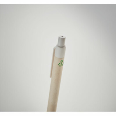 Bolígrafo con pulsador con cuerpo de cartón de leche reciclado y piezas de PLA (en maíz 100% biodegradable). Tinta azul.