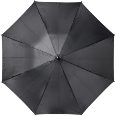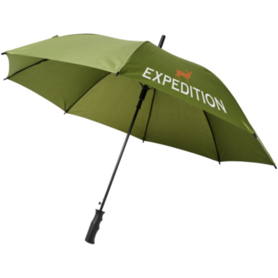 Paraguas de apertura automática con capa exterior de poliéster de tafetán. Tiene un robusto eje metálico y una estructura patentada de fibra de vidrio de alta calidad, que ofrece la máxima flexibilidad en condiciones de viento. Mango de plástico recto, puntas y capa externa en la superior. Disponible en una amplia variedad de colores contemporáneos y con una gran zona de decoración.
