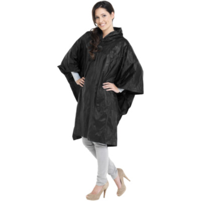 Poncho plegable con capucha para lluvia inesperada durante cualquier actividad al aire libre. El poncho reutilizable tiene un tamaño de 100 x 130 cm, además de cierre con corchetes a ambos lados. Disponible en una amplia variedad de colores con una gran zona de decoración en la bolsa.