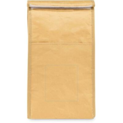 Porta bocadillos de papel woven con bolsillo exterior. Material de aislamiento: Capa de espuma PE. Capacidad 3L.