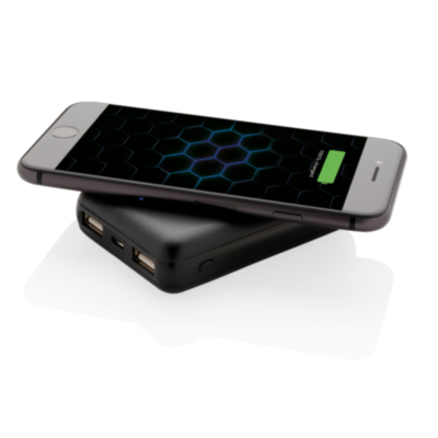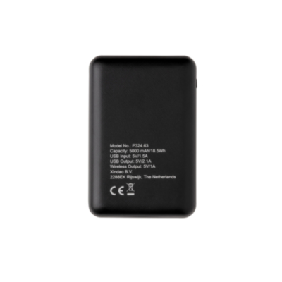 Batería externa ultra compacta de 5.000 mAh hecho de ABS que cabe en tu bolsillo tan perfectamente que puedes llevarla a donde quiera que vayas. Soporta carga inalámbrica de 5W y carga a través de puerto USB por cable. Cuando esté completamente cargada, te proporcionará suficiente energía para recargar tu teléfono móvil hasta tres veces. El PowerBank contiene una batería de polímero de litio de alta densidad de 5.000 mAh de larga duración de grado A. Los indicadores de energía indicarán el nivel de energía restante para que siempre sepas cuándo recargar. Entrada puerto micro USB: 5V/1.5A Salida: 5V/2.1A. Salida inalámbrica:5V/1A.
