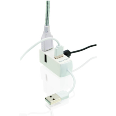 Compacto puerto USB 2.0 de diseño minimalista en variados colores. Con 4 puertos USB y presentado en caja individual negra.