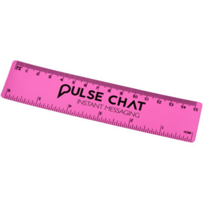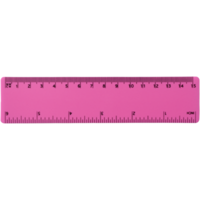 Regla flexible de plástico ligero con marcas tanto en pulgadas como en centímetros. Tenga en cuenta que las marcas de la regla se imprimen junto con los logos, las reglas estándar de stock no llevarán marcas.