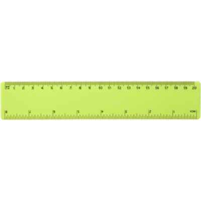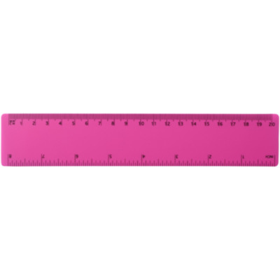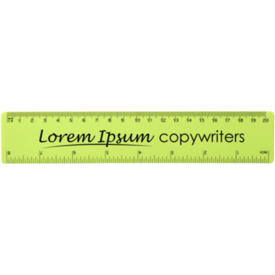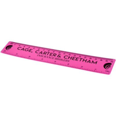 Regla flexible de plástico ligero con marcas tanto en pulgadas como en centímetros. Tenga en cuenta que las marcas de la regla se imprimen junto con los logos, las reglas estándar de stock no llevarán marcas.