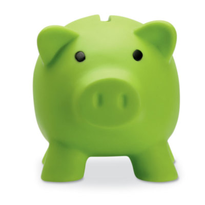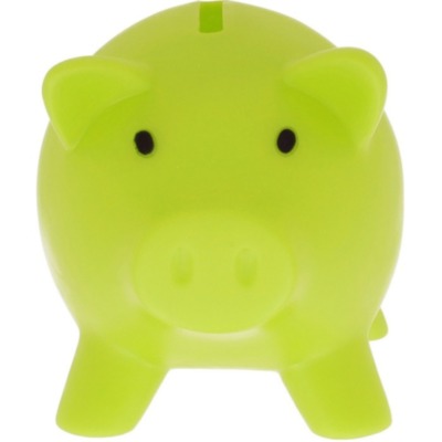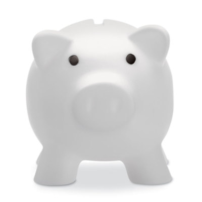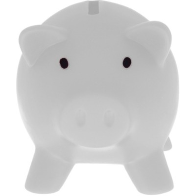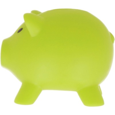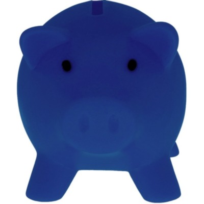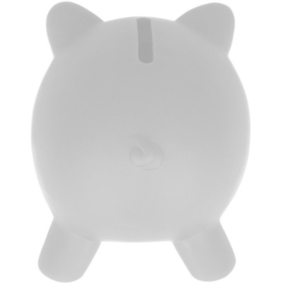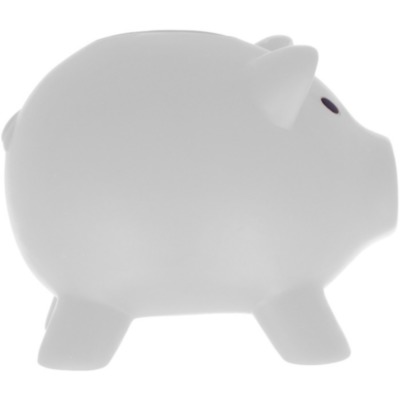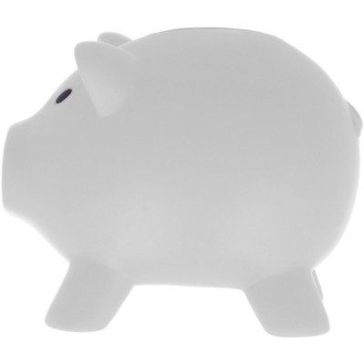 Hucha de cerdito en PVC con tapón en ABS en la parte inferior.