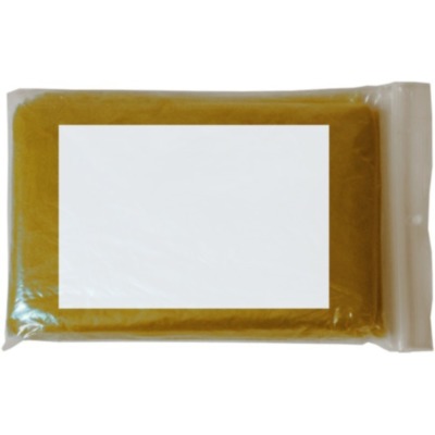 Impermeable de plástico plegable con capucha, presentado en bolsa de plástico transparente.