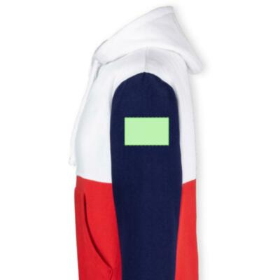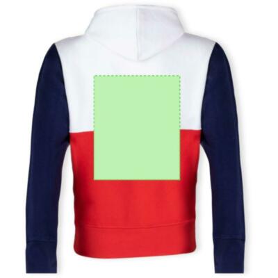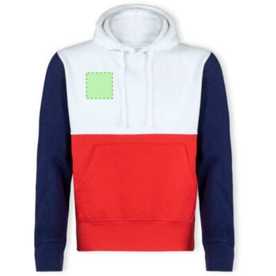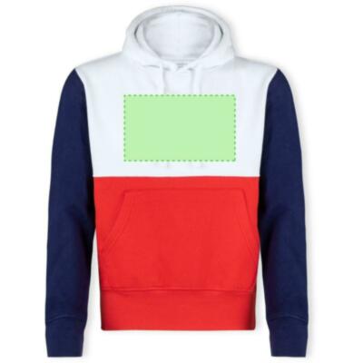 Sudadera unisex tricolor con capucha. Bolsillo canguro y elásticos de ancho extra para un ajuste perfecto. Confeccionado en mezcla de algodón y poliéster con un gramaje de 280g/m2. Interior de felpa cepillada para una mayor sensación de calidad. Tacto suave y corte moderno. Cordones ajustables planos y ojetes de confección, evitando así el uso de metal. Dobles costuras para una mayor durabilidad y resistencia al uso intensivo. Etiqueta fácilmente removible. Disponible en tallas XS, S, M, L, XL y XXL.