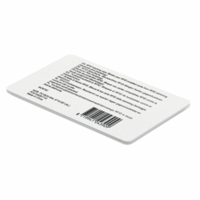 Tarjeta RFID. La capa de aluminio dentro de esta tarjeta bloquea todas las frecuencias de radio que pasan. Todas las demás tarjetas que se encuentren detrás de esta tarjeta de bloqueo estarán protegidas. (0,76 mm).