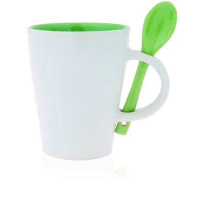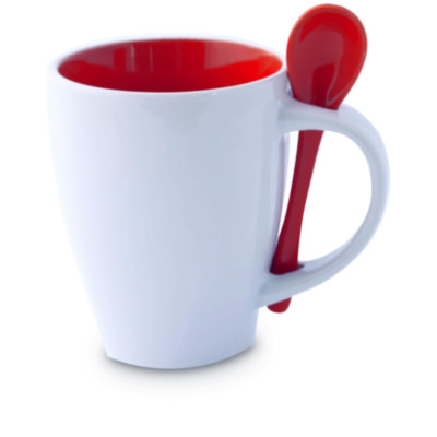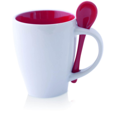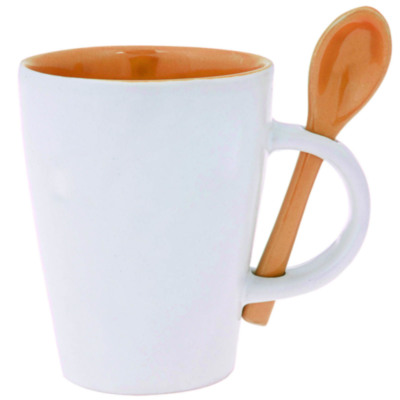 Taza de cerámica de 350ml de capacidad en divertida combinación de exterior en color blanco e interior en gama de vivos colores. Con cuchara de cerámica a juego integrada en asa y presentada en caja individual.Disponible manual de instrucciones en español e inglés.