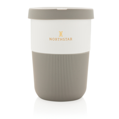 Una alternativa sostenible a las tazas tradicionales! Dando estilo y practicidad a tu viaje matinal, esta taza de café PLA es ideal para llevar tu bebida caliente favorita. Esta taza no solo es elegante sino también amable para el planeta. Viene con un agarre de silicona y una tapa para tu comodidad. 100% libre de melamina. Capacidad 380ml.