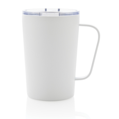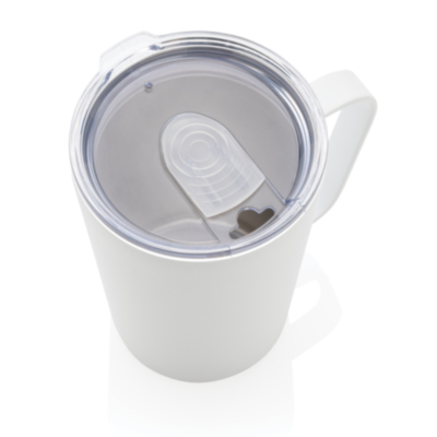 Esta taza moderna de acero inoxidable reciclado RCS cuenta con una tapa antigoteo que se abre suavemente para brindar el vertido perfecto. Esta taza está hecha con acero inoxidable reciclado al vacío de doble pared para mantener las bebidas calientes (3H) o frías (6H) por más tiempo. Fabricado con materiales reciclados certificados RCS (Recycled Claim Standard). La certificación RCS garantiza una cadena de suministro completamente certificada de los materiales reciclados. Contenido reciclado total: 88% basado en el peso total del artículo. Sin BPA. Capacidad 420ml. Incluye embalaje kraft certificado FSC®.