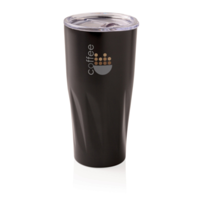 Esta taza de acero inoxidable 304 tiene una construcción al vacío de doble pared con aislamiento de cobre, significando que mantiene las bebidas calientes durante 8 horas y frías durante 24 horas. Esto evita la condensación en el exterior del vaso. Fácil de beber y tapa a presión con cierre deslizante. Contenido 500 ml. A prueba de derrames y solo para lavar a mano. Presentado en caja de regalo XD.