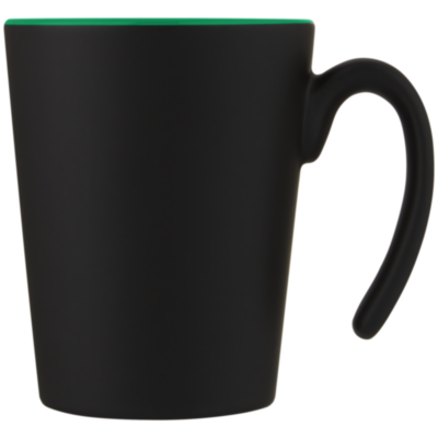 Taza de cerámica con diseño moderno, acabado mate de interior brillante y efecto color pop. Capacidad de 360 ml. Todos los métodos de grabado son aptos para lavavajillas. Se presenta en una caja de regalo de cartón reciclado.