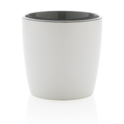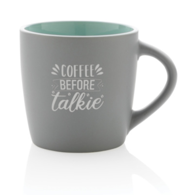 Esta taza de cerámica presenta un diseño fresco con un acabado exterior mate y detalles de color en el interior. La taza es apta para lavavajillas y probada de acuerdo con EN12875-1 (al menos 125 ciclos de lavado para todos los métodos de marcaje). Presentado en una caja de regalo de papel kraft. Capacidad 300ml.