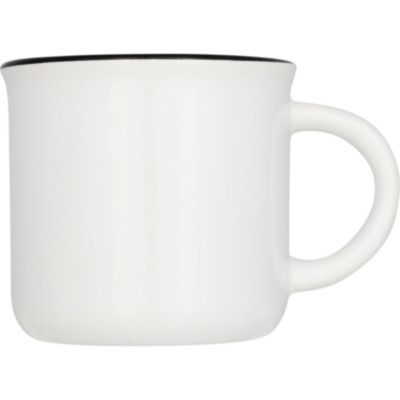 Taza de cerámica vintage. La capacidad de volumen es de 310 ml. Apto para lavavajillas de acuerdo con EN12875-1 (al menos 125 ciclos de lavado) para todos los métodos de marcaje. Presentado en caja de cartón blanca.