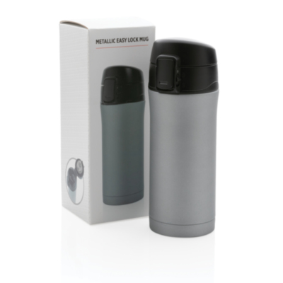 Una hermosa versión metálica de esta gran taza al vacío de acero inoxidable de doble pared que mantiene tu bebida caliente hasta 5 horas o fría hasta 15 horas. La tapa se puede cerrar con llave y por lo tanto evita cualquier riesgo de fugas o derrames. La tapa es fácil de mantener limpia para una higiene óptima y se puede lavar en el lavavajillas. El diseño único de la taza te permite beber de manera cómoda y segura con solo una mano. El tamaño de la taza es adecuado para colocar en cualquier portavasos de coche. Capacidad: 300 ml.