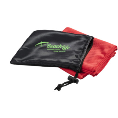 Toalla refrescante de rápida absorción, hecha de un duradero y resistente poliéster, de secado rápido y lavable para mantener el cuerpo fresco durante el ejercicio o cualquier actividad al aire libre. Viene en una pequeña bolsa de malla con cierre para facilitar su transporte. Disponible en 5 alegres colores. Amplia zona de decoración en la bolsa, también es posible decorar la propia toalla. Tamaño: 30 x 80 cm.