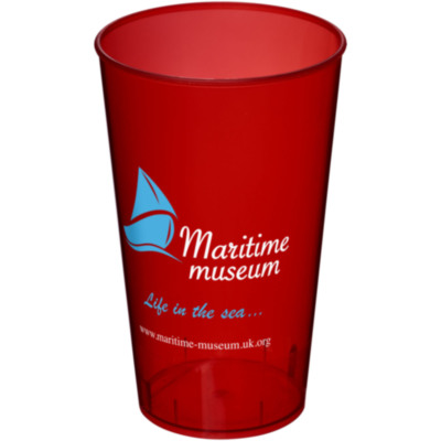 Vaso de plástico de una sola capa. Opción reutilizable para bebida a precio asequible. Capacidad de 375 ml. Fabricada en el Reino Unido.
