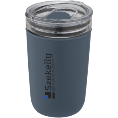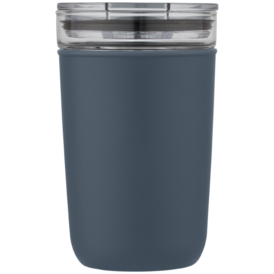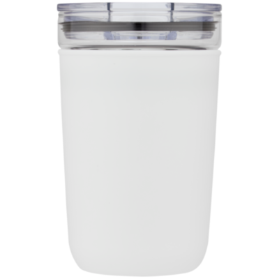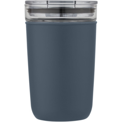 Vaso de vidrio protegido por una carcasa de plástico reciclado. El vaso está hecho de resistente vidrio borosilicato 100 % que conserva la bebida en buen estado y no contiene ningún producto químico dañino. No contiene BPA y se ha probado y homologado según la legislación alemana sobre seguridad alimentaria (LFGB). Contenido de ftalatos probado y homologado según la normativa REACH. El vaso se adapta a la mayoría de las máquinas de café. Capacidad de 420 ml. Para lavar el artículo en el lavavajillas, retire la carcasa de plástico. Se presenta en una caja de regalo de cartón reciclado.