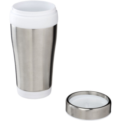 Ya sea para tomar un café por la mañana cuando viajas o para disfrutar de una buena taza de té en la oficina, el vaso Elwood es la solución perfecta. La doble pared aislante del vaso mantiene las bebidas frías o calientes durante mucho tiempo. Gracias a la tapa deslizante giratoria es muy fácil el poder beber. La combinación de acero inoxidable y plástico hace que el vaso sea muy fuerte, resistente a la corrosión y fácil de limpiar. Capacidad de 410 ml.