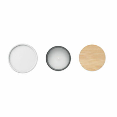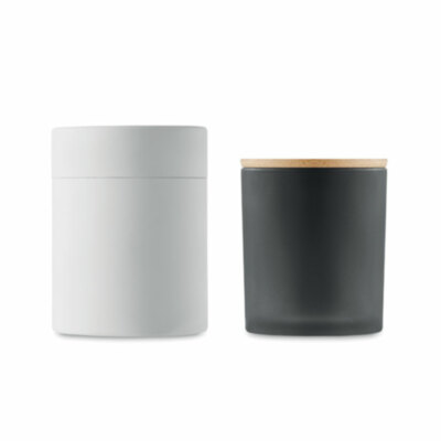 Vela de cera con fragancia de plantas en un tarro de cristal opaco con tapa de bambú. 200 gr. Tiempo de combustión: 20 horas. Presentada en una caja de papel tubular de regalo.